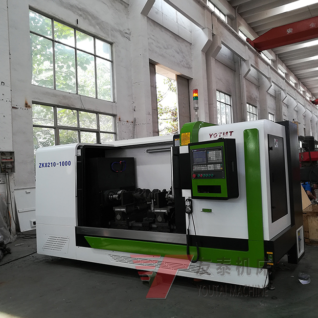 1.zk8210-1000铣端面打中心孔机床,曲轴铣打机采用三轴数控系统控制,工件长度、套车外圆、钻中心尺寸易于控制与调整。